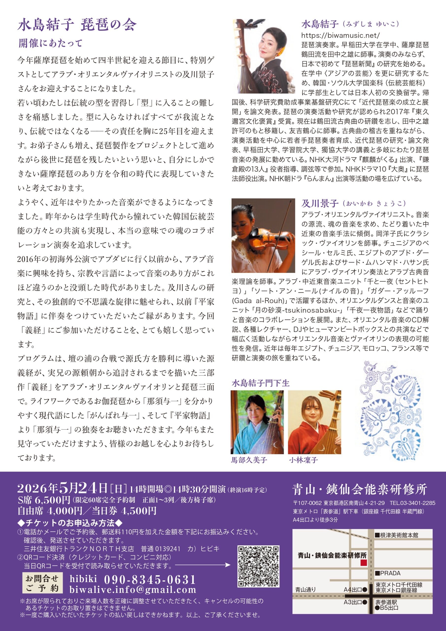 第6回 水島結子 琵琶の会 ―25年目の節目に、アラブの風を迎えて―