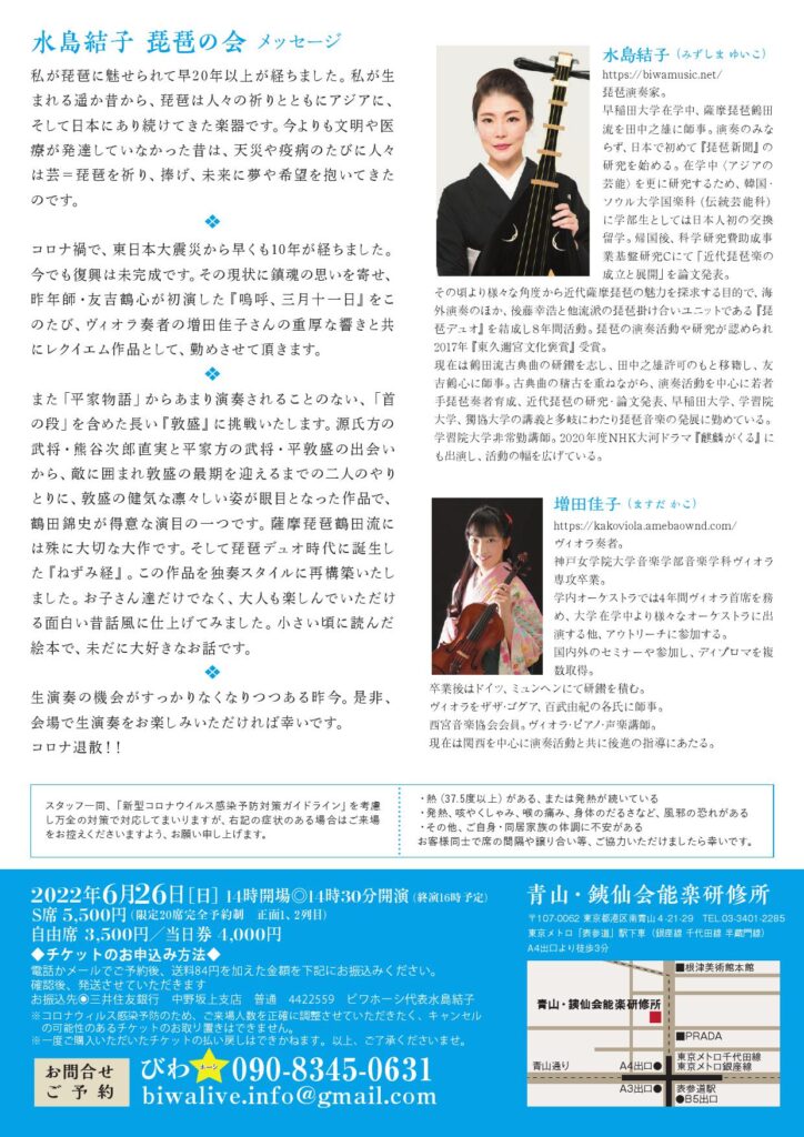 出演:水島結子(琵琶)、ゲスト:増田佳子(ヴィオラ)